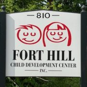 Fort Hill Child Development Center is licensed for 189 children ranging in ages 6 weeks to 11 years old. We have ten classrooms designed specifically for each age group. We have the ability to move children from one classroom to the next based on age and developmental rediness. We have four playgrounds, each designed for a specific age group. We have an infant/toddler playground, a 2-3 year old playground, a 4-5 year old playground, and a 4-11 year old playground. Fort Hill has three 15 passenger vans used for transporting after school age children from five area schools. We have two resident cats that enjoy greeting the children from a distance. Their names are Luna and Mena.
