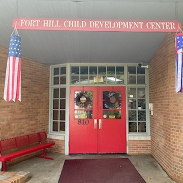 Fort Hill is located in a quiet, residential neighborhood just minutes away from downtown Charleston. Fort Hill offers online viewing of your child’s classroom. We have twenty-five cameras positioned inside and outside of the center covering all classrooms, hallways, entrances, and outside grounds. All doors are locked and can only be accessed by using an issued key fob. We follow CDC guidelines regarding the health and safety of our community.